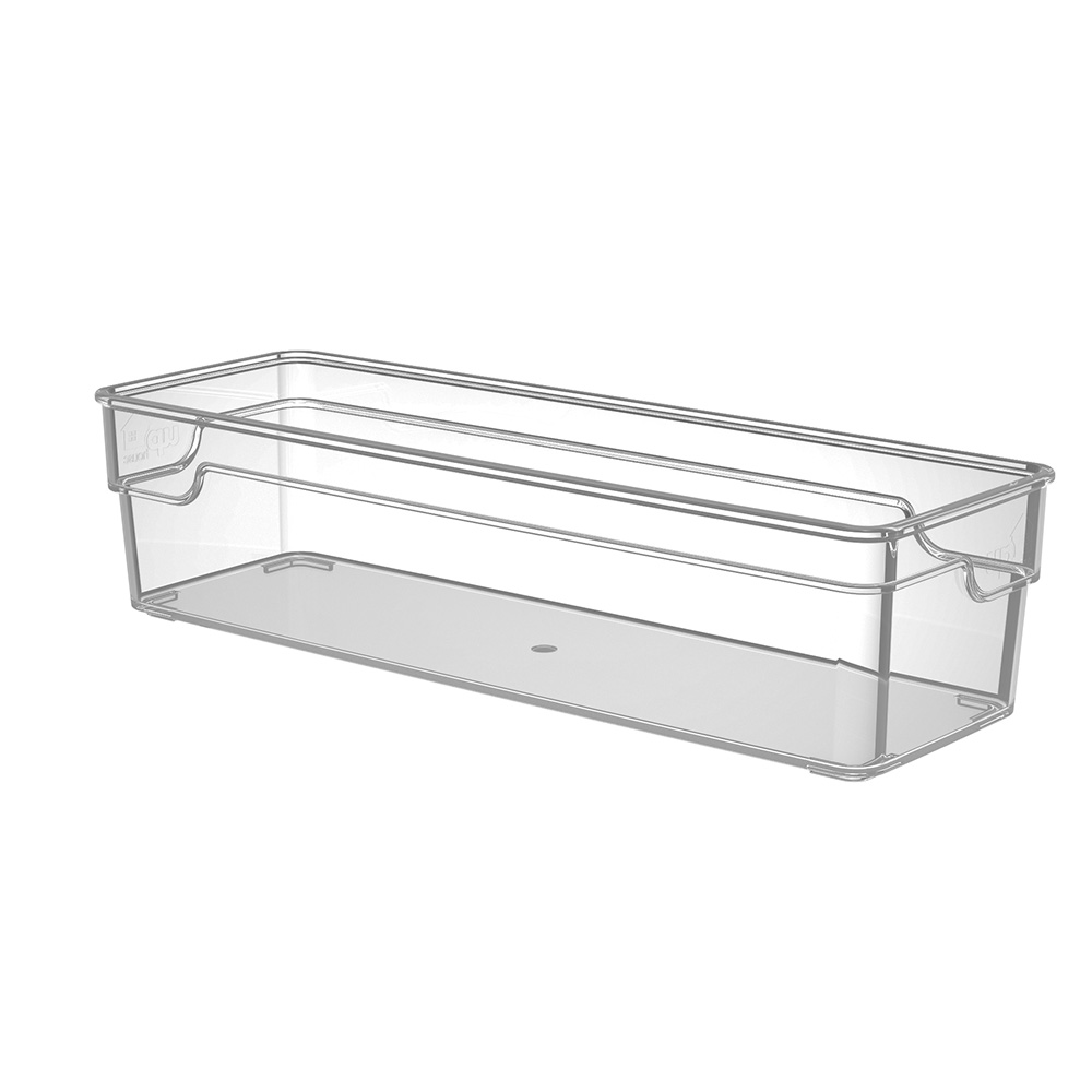 Fabricado em plástico de alta transparência, ele traz o aspecto de vidro com a resistência necessária para o uso cotidiano. É a peça-chave para quem busca um visual de revista, eficiência organizacional e durabilidade em sistemas de armazenamento interno.